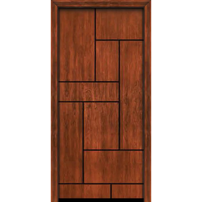 ESWDA 42×80 Exterior Cherry Contemporary Lines Groove Single Entry Door