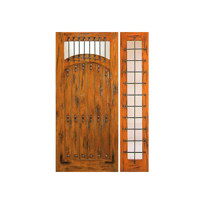 ESWDA 50×80 Exterior Knotty Alder Prehung Door with One Sidelight Camber Lite