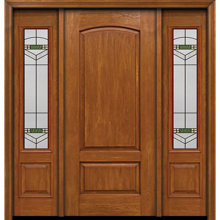ESWDA 54×80 Exterior Cherry Two Panel Camber Single Entry Door Sidelights Greenfield Glass