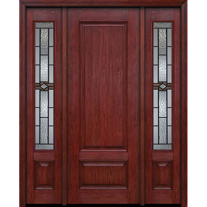 ESWDA 54×96 Exterior Cherry 96in Two Panel Single Entry Door Sidelights Mission Ridge Glass