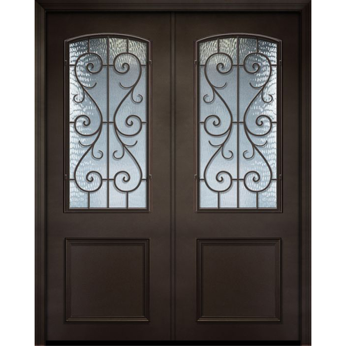 ESWDA 64×96 Exterior 96in ThermaPlus Steel St. Charles 1 Panel 2/3 Arch Lite Double Door