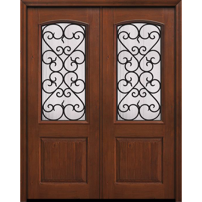 ESWDA 64×96 Exterior Knotty Alder 96in Double 1 Panel 2/3 Arch Lite Palermo Door