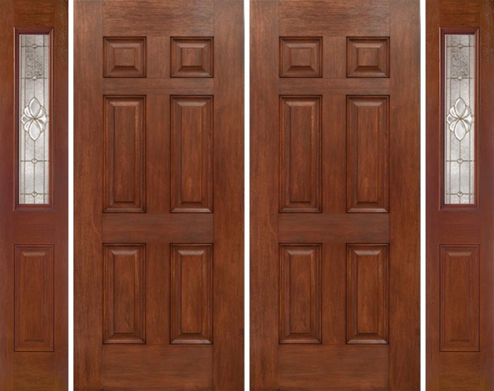 ESWDA 88×80 Exterior Mahogany Six Panel Double Entry Door Sidelights 1/2 Lite w/ HM Glass